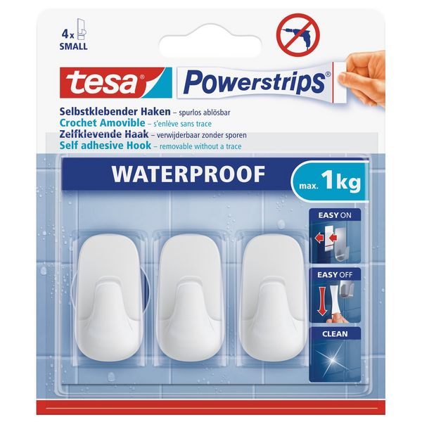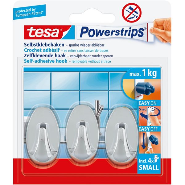 tesa Klebehaken selbstklebend mit Powerstrips, wiederverwendbar, Small 3 St.