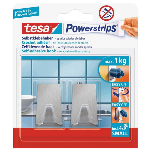 tesa Klebehaken selbstklebend mit Powerstrips, wiederverwendbar, klein 2 St.