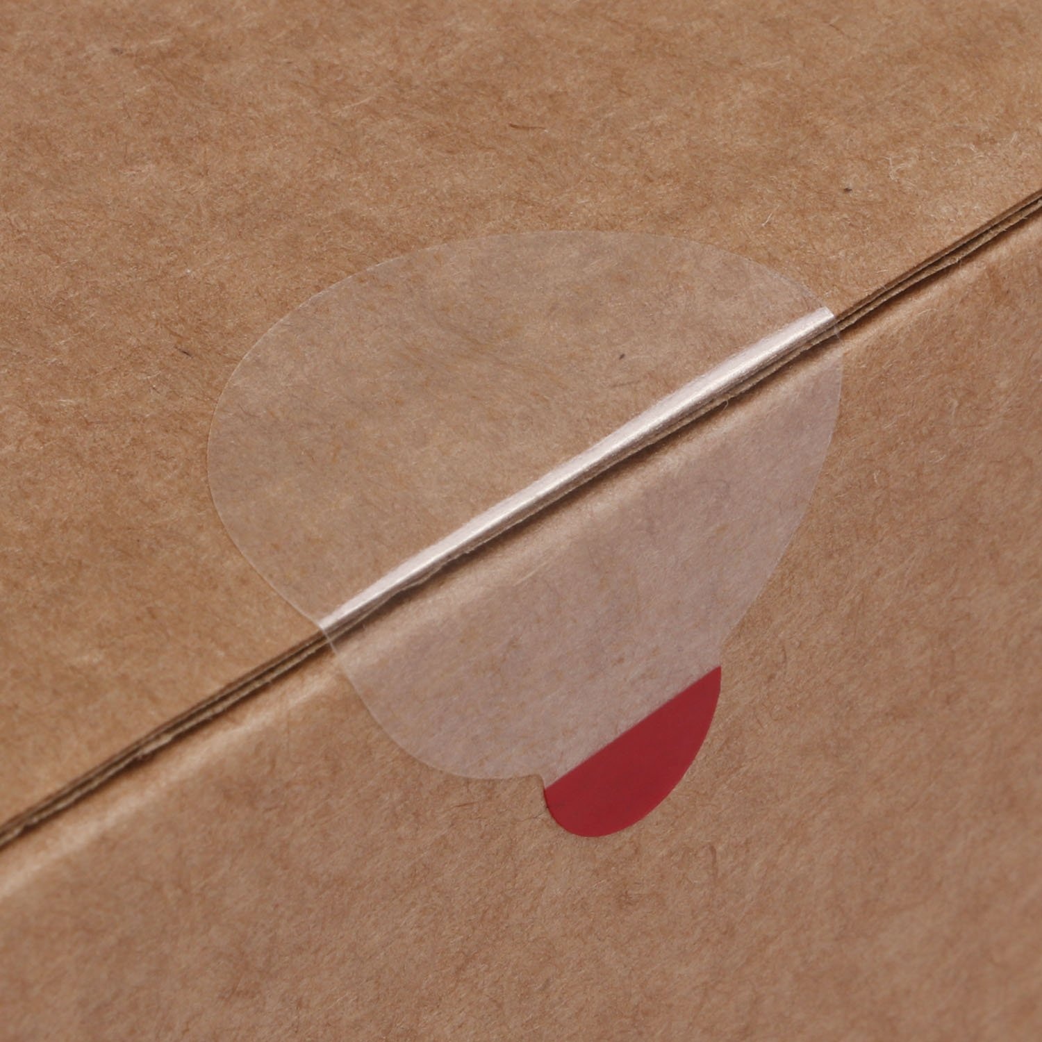 Klebepunkte, ø = 28 mm, mit roter Anfasslasche, schwach (Rolle mit 5.000 Stück), PE, transparent
