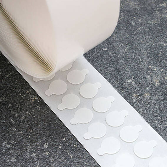 Klebepunkte, einseitig stark haftend, mittig perforiert, 40 mm, transparent