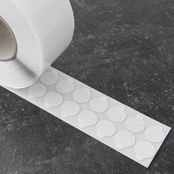 Klebepunkte, einseitig stark haftend, mittig perforiert, 20 mm, transparent, 5000 Stück