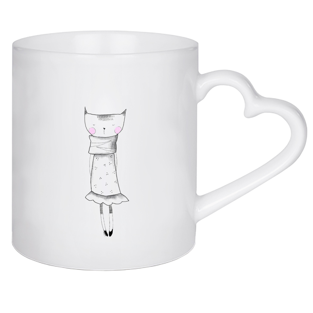 Herztasse "Bianca Peters - Lillycat im Kleid" artboxONE - Für Kinder,Tiere,Schwarzweiß,Fashion