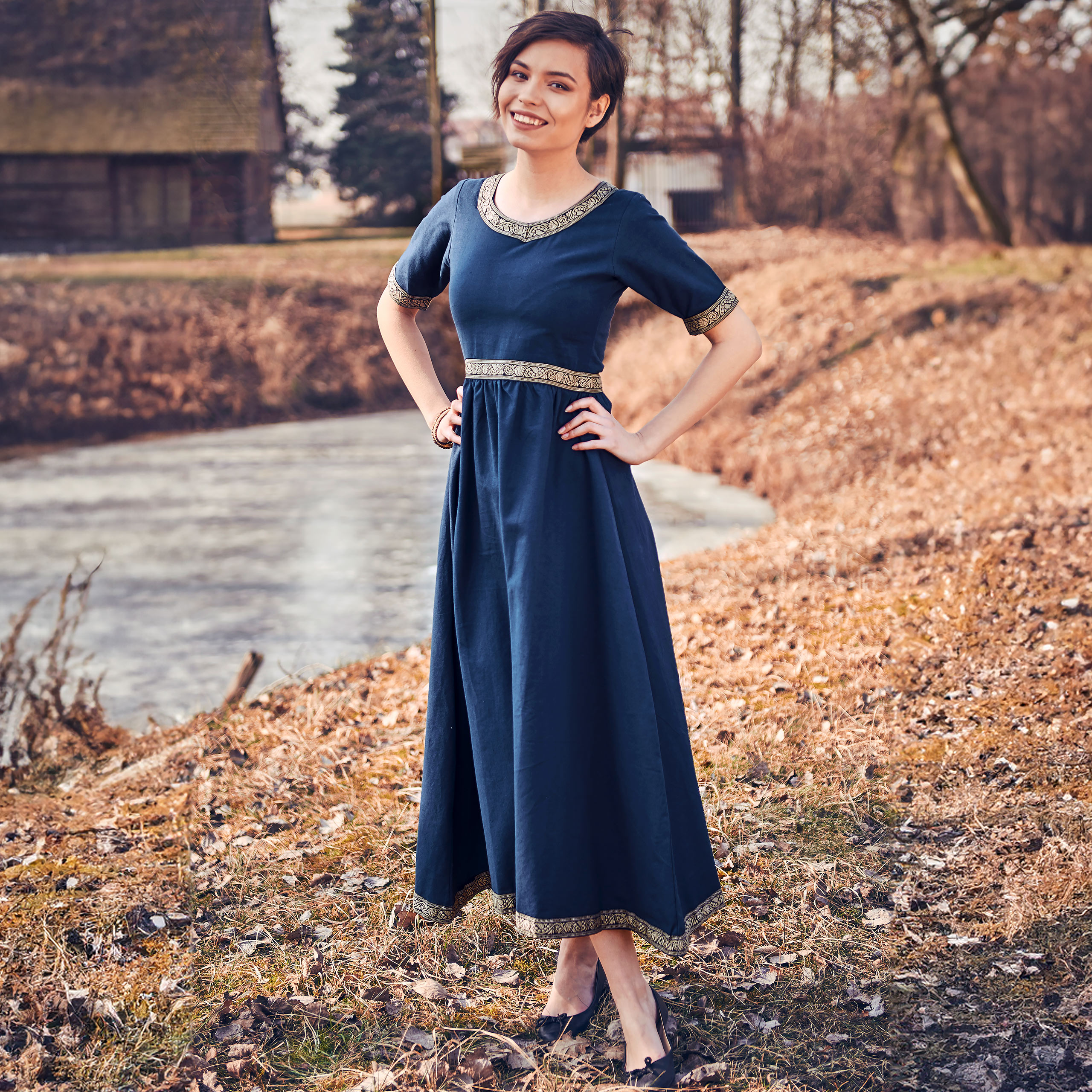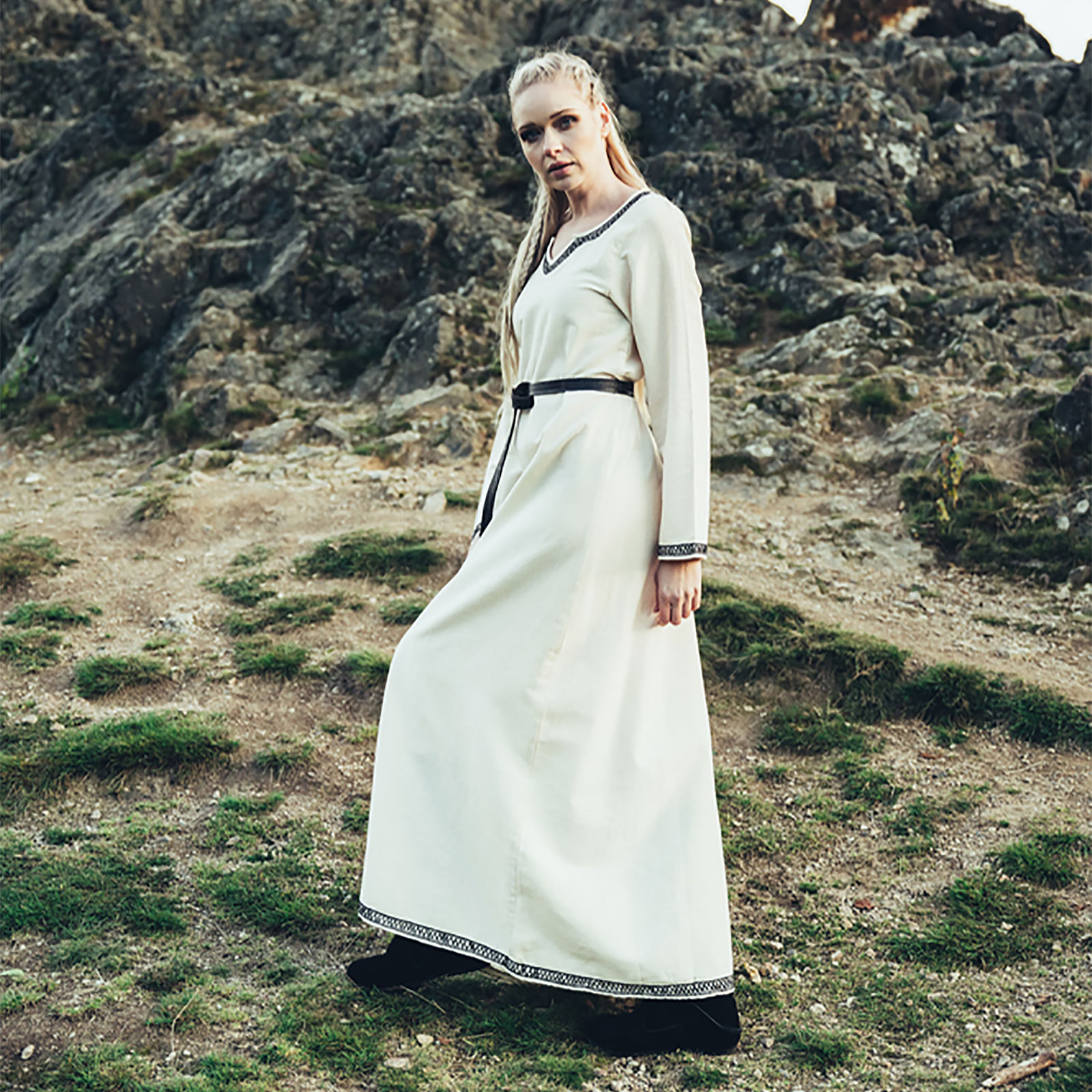 Wikinger Kleid "Lagertha" Natur/Blau XXXL