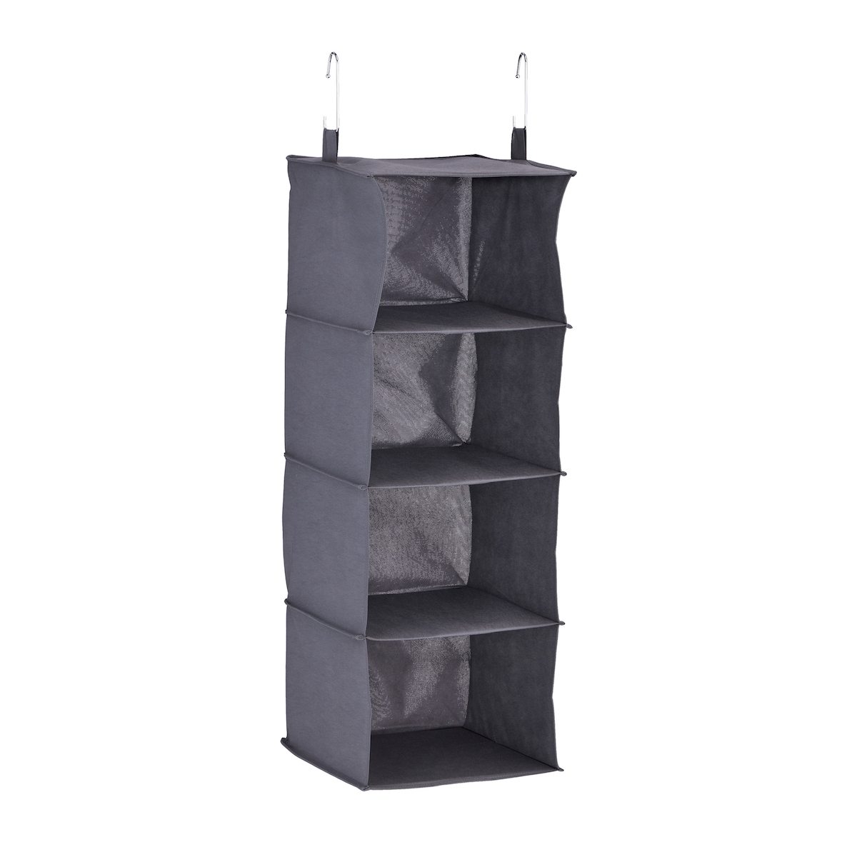 Relaxdays Hängeregal Kleiderschrank, 4 Fächer, Stoff, HBT: 97 x 30 x 30 cm, 2 Haken, Kleideraufbewahrung hängend, grau