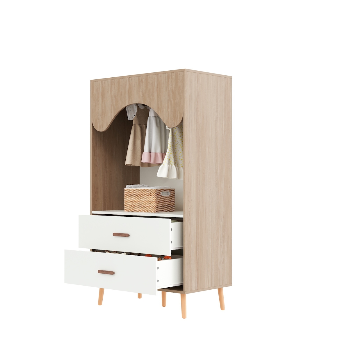 Merax Kleiderschrank 80x46x141.5cm, mit Schubladen & Kleiderstange, Garderobenschrank mit offenem Fach, Weiß/Naturholz
