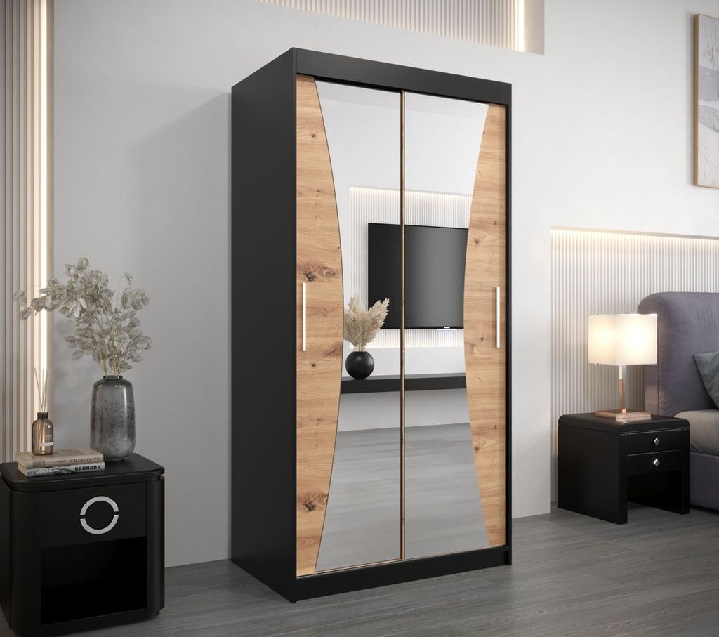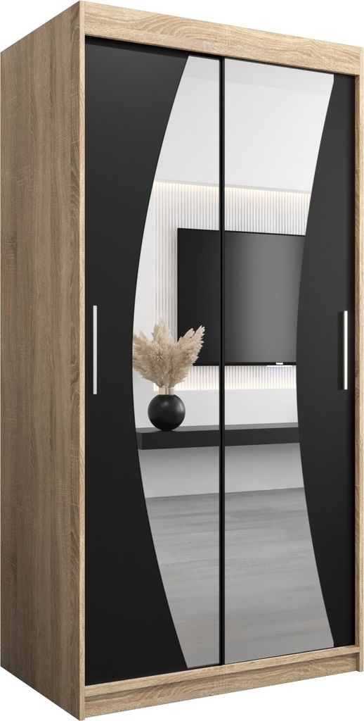 Kleiderschrank, Schiebetürenschrank Schlafzimmer, Schrank mit Spiegel WAVE 100 cm