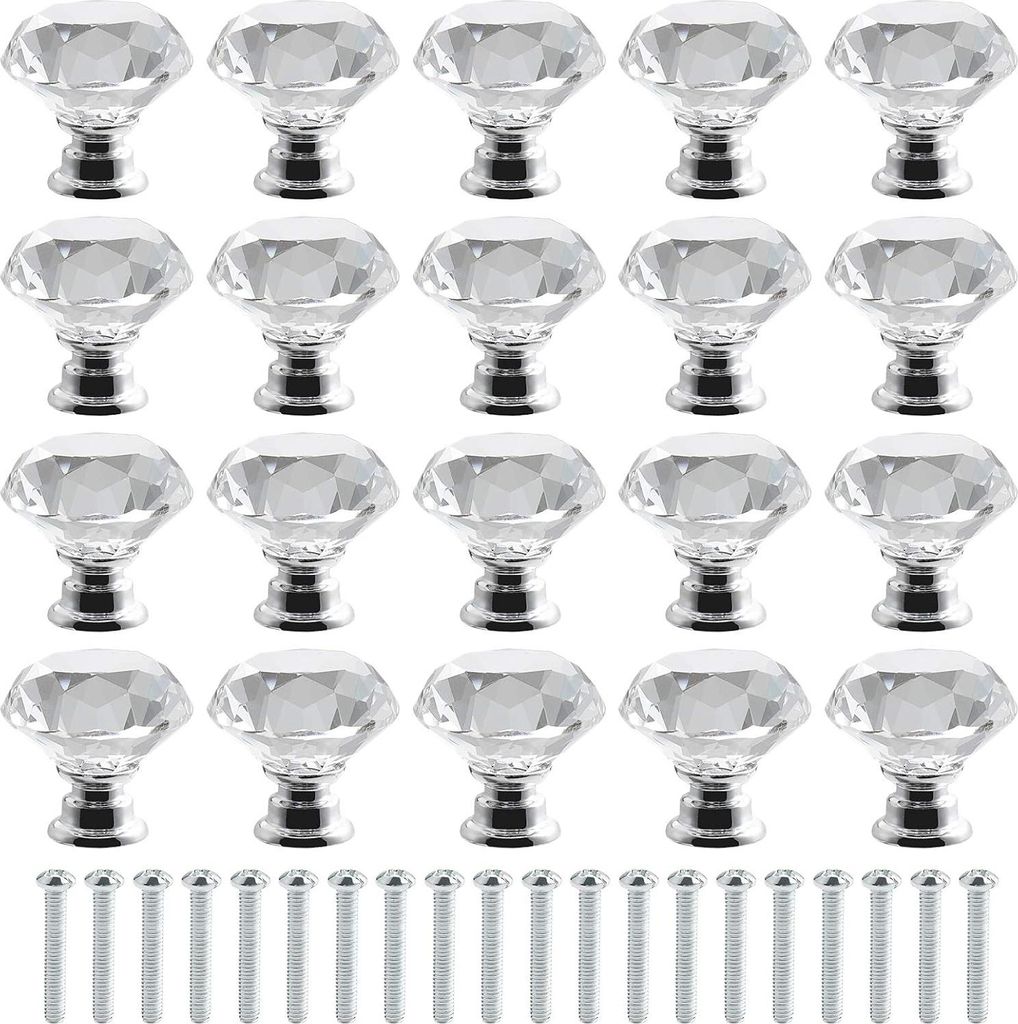 Fest 20 Stück 30mm Transparent Kristallglas Diamant Türgriff mit Schrauben, hochwertiger Light Luxury Griff für Kleiderschrank, Schublade, Einze...