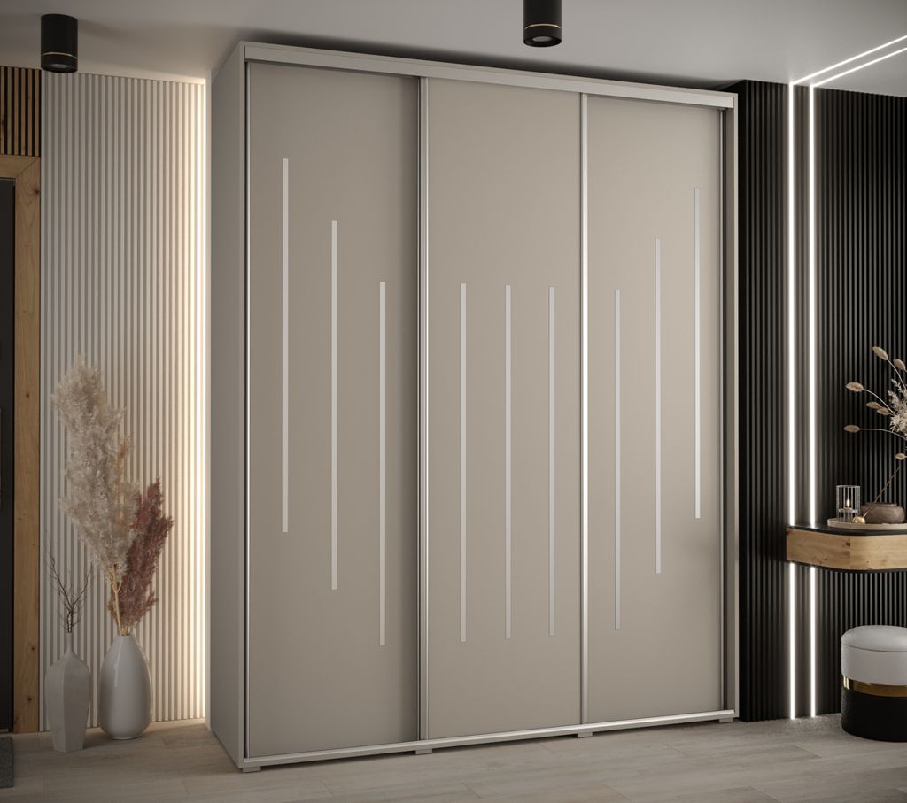 Kleiderschrank, Schiebetürenschrank Schlafzimmer, Schrank mit Spiegel WAVE 180 mit Aufsatz, Höhe 240 cm