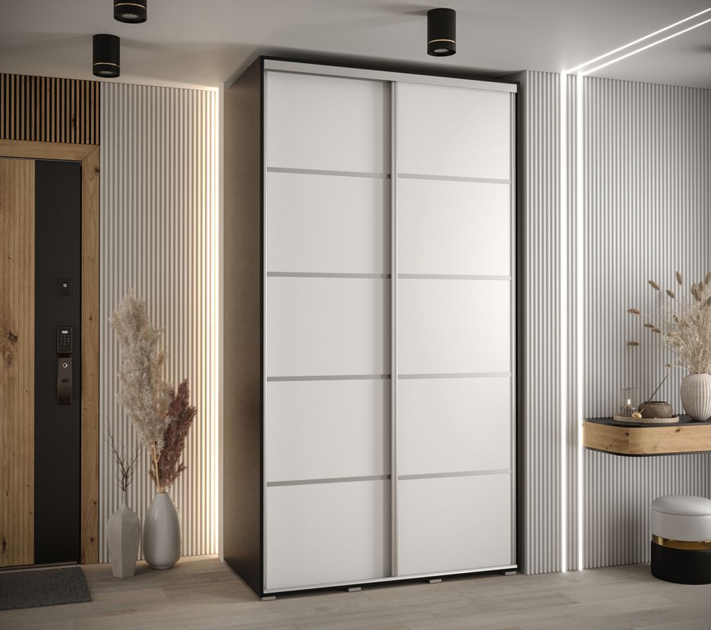 Kleiderschrank ASIRI 4 – 140/60 cm, schwarz/weiß/silber