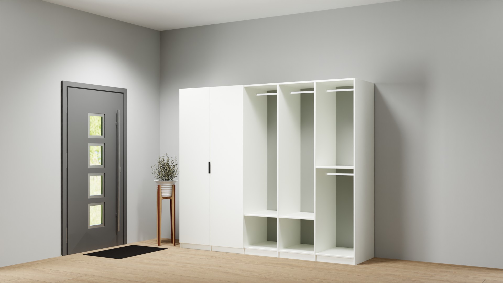 Kleiderschrank Joker in Weiß mit Beton begehbarer Eckkleiderschrank