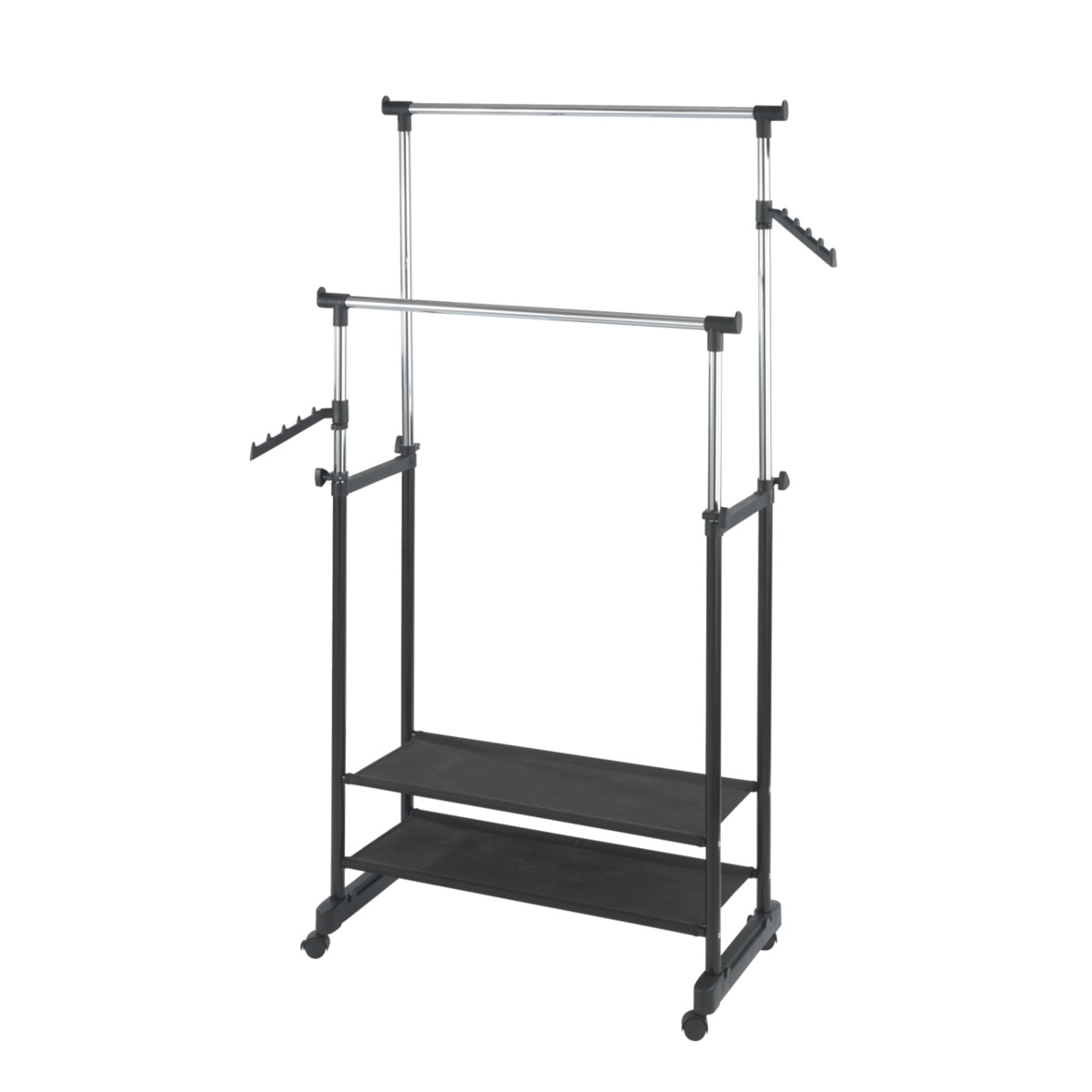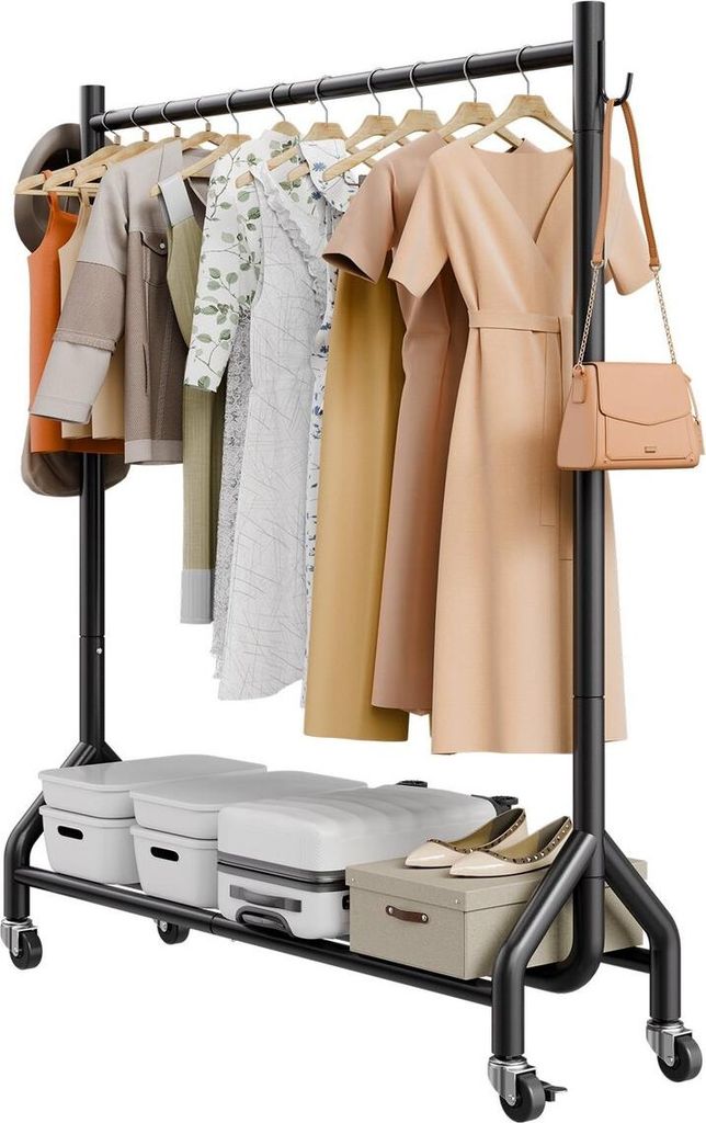 Kleiderständer / Garderobenständer - Rollbar mit 2 Kleiderstangen - Tragkraft 150 kg - Ausziehbar - Mit Aufbewahrungskorb - Robuster Kohlenstoffs...