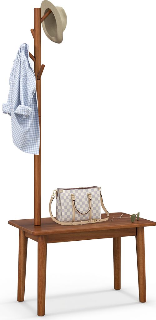 GOPLUS Garderobenständer aus Holz, Kleiderständer mit Beistelltisch oder Sitzbank, Garderobe mit 4 Haken, Flurregal für Flur, Schlafzimmer, Wohn...