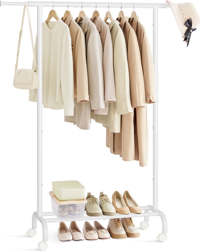SONGMICS Kleiderständer auf Rollen, ausziehbare, 40 x (83-120) x 156 cm, bis 45 kg belastbar, weiß