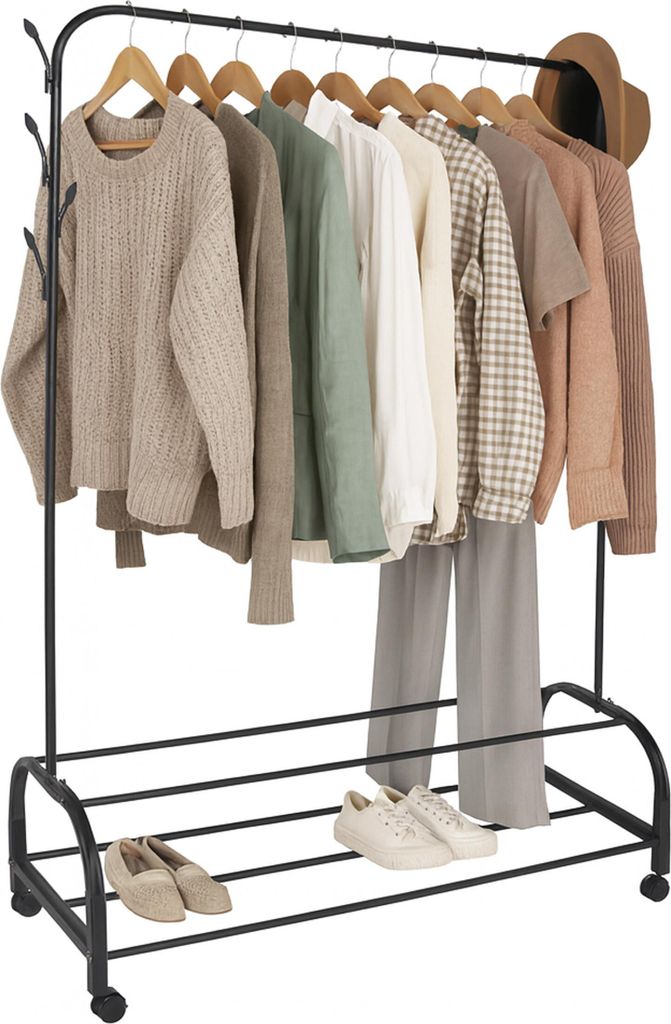 Kleiderständer - mit Rollen - mit Schuhregal - 165 x 80 x 44 cm - Schlafzimmer