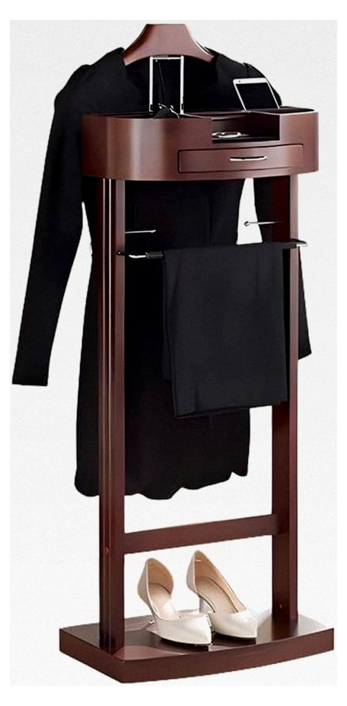 Massivholz Herrendiener mit Hosenbügel und Schublade, freistehender Kleiderständer mit Schuhregal