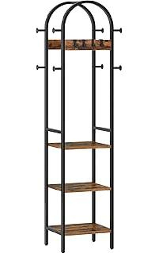 HOOBRO Garderobenständer, gewölbter freistehender Kleiderständer mit 12 Haken, 3-stöckige Garderobe für Kleidung, Taschen und Accessoires, Woh...
