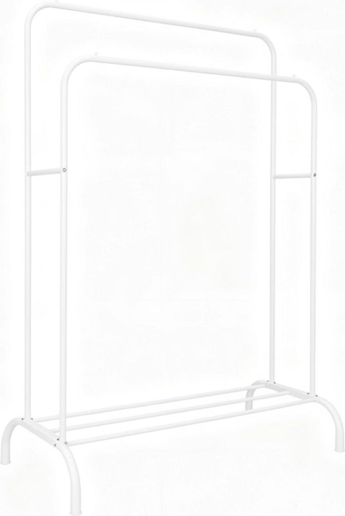 Kleiderständer mit 2 Kleiderstangen Garderobenständer Haken Stahlgestell 110x33x145cm Weiß