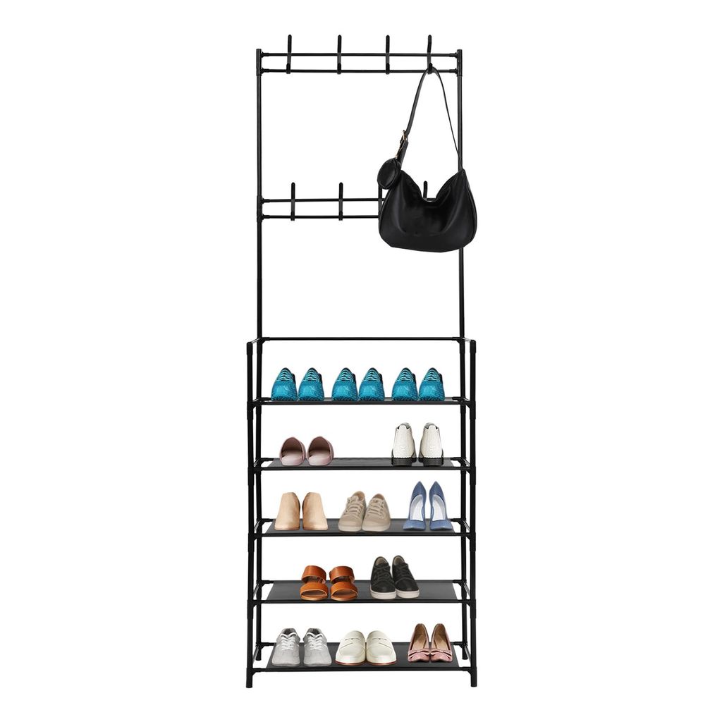 Garderobenständer mit Schuhregal 60*28*171cm multifunktionales Kleiderständer (Schwarz)