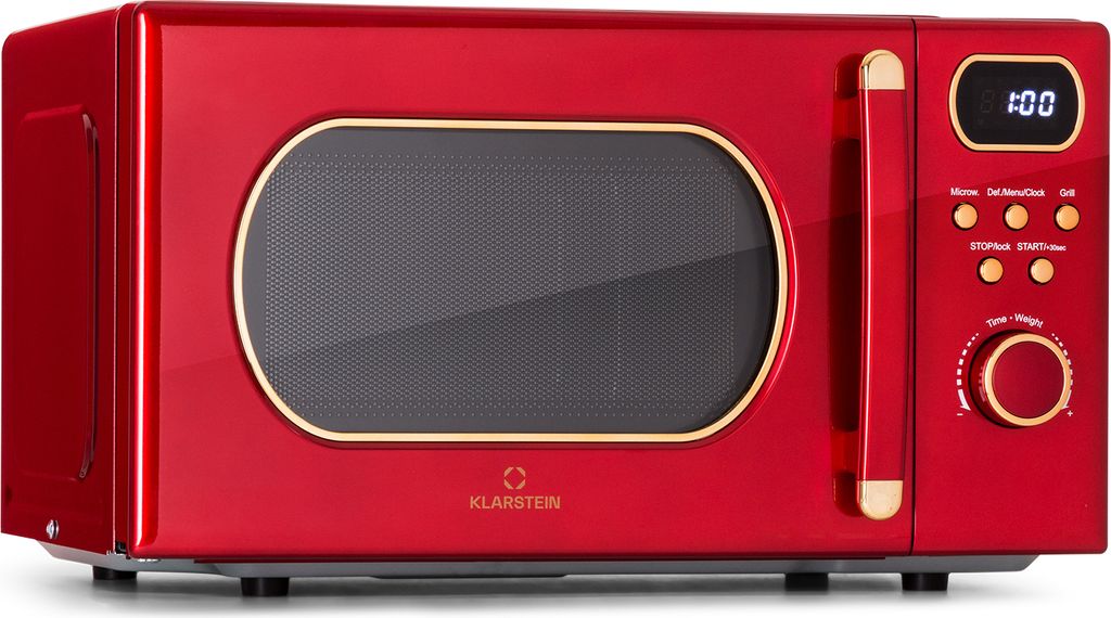 Klarstein Mikrowelle mit Grill, 800 Watt Mikrowelle Klein, 3-in-1Edelstahl-Mikrowelle Rot, Kleine 20 Liter Mikrowelle mit Auftau- und Pizzafunktion...