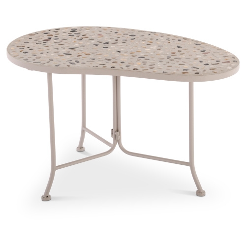 Gartentisch, 80 cm, Beistelltisch mit Kiesel-Mosaik-Oberfläche, Naturbeige, nierenförmig, Kleiner Balkon- und Terrassentisch | Raburg Maven