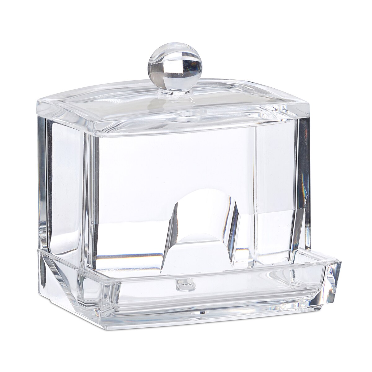 Relaxdays Wattestäbchen Aufbewahrung, Acryl, Box mit Deckel, kleiner Ohrstäbchen Spender Bad & Schminktisch, transparent