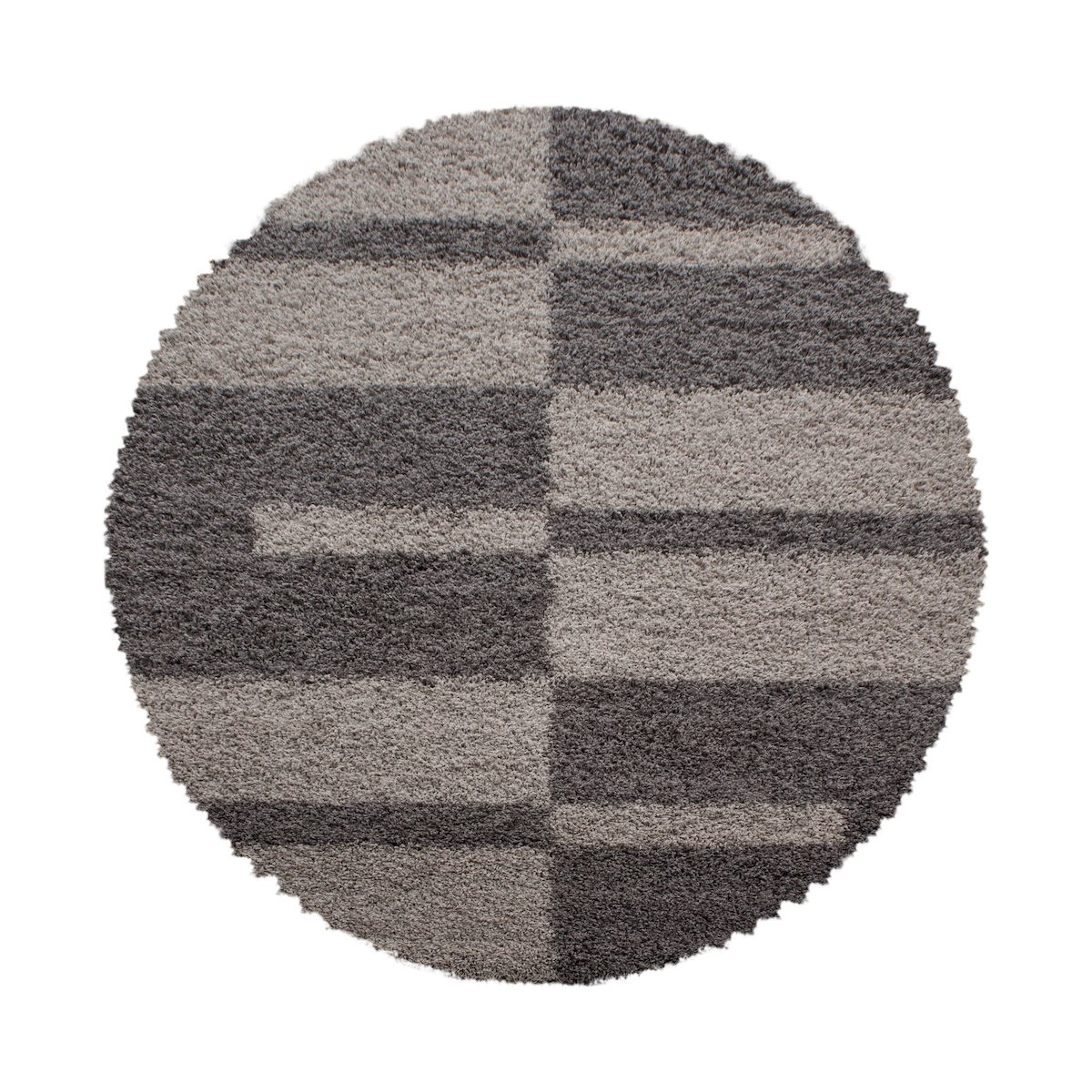 Carpetsale24 Hochflor Teppich Rund 80 cm Grau – Weicher Shaggy Flokati im karierten Design – Kleiner Bodenteppich für Flur