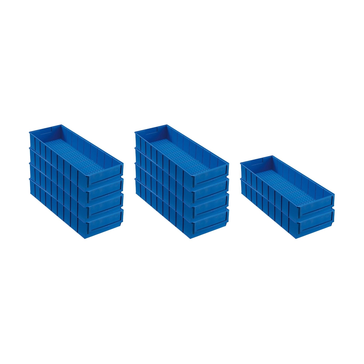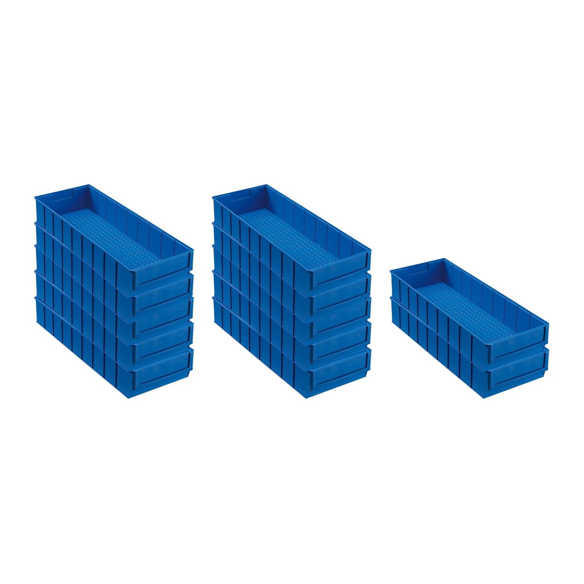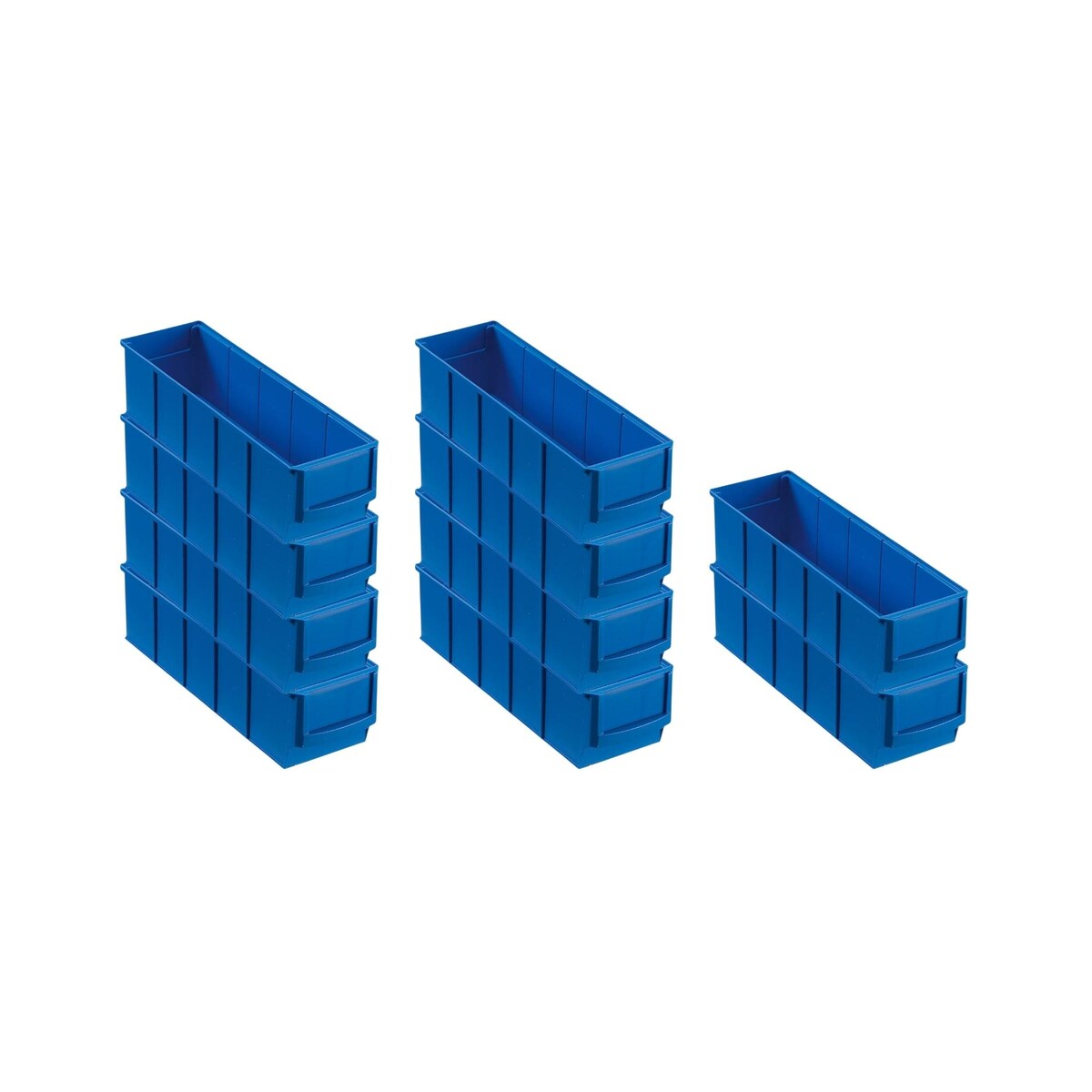 SuperSparSet 10x Regalkasten Classic | Blau | HxBxT 8,3x15x50cm | Polypropylen | Sichtlagerkasten, Sortimentskasten, Sortimentsbox, Kleinteilebox