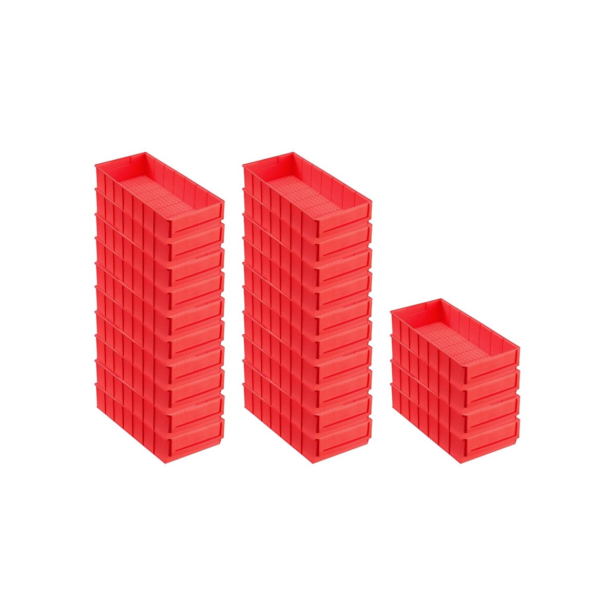 SuperSparSet 16x Regalkasten Classic | Rot | HxBxT 8,3x9x60cm | Polypropylen | Sichtlagerkasten, Sortimentskasten, Sortimentsbox, Kleinteilebox