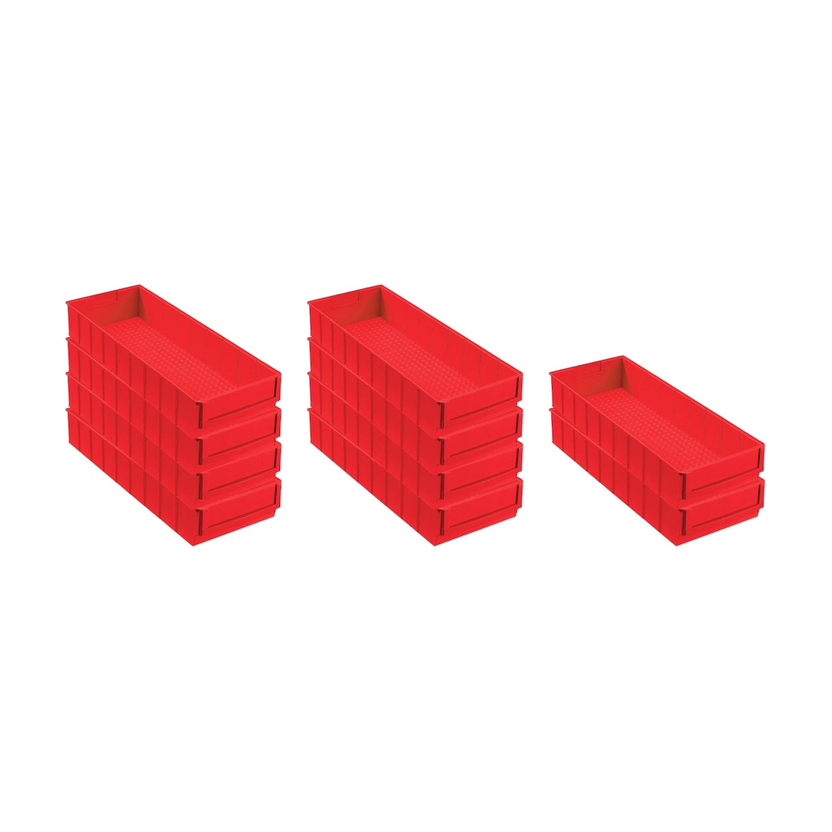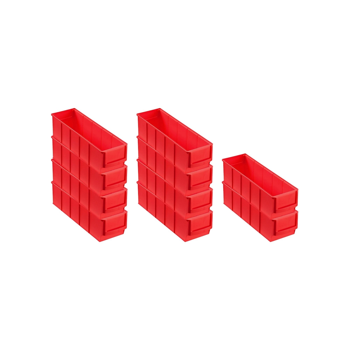 SuperSparSet 10x Regalkasten Classic | Rot | HxBxT 8,3x15x40cm | Polypropylen | Sichtlagerkasten, Sortimentskasten, Sortimentsbox, Kleinteilebox