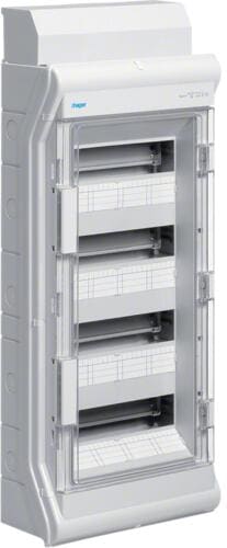Hager VA48K Volta Tür für Kleinverteiler Aufputz, 4-reihig, Klarsichttür, mit Türschild, IP30, Kunststoff, weiß