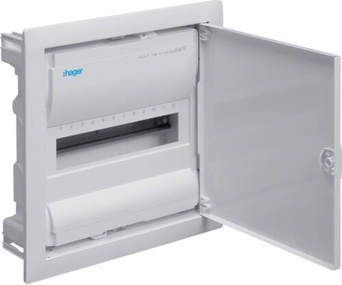 Hager VU12NC Volta Kleinverteiler, Unterputz, 1-reihig, 12 PLE, IP30, mit Tür, weiß