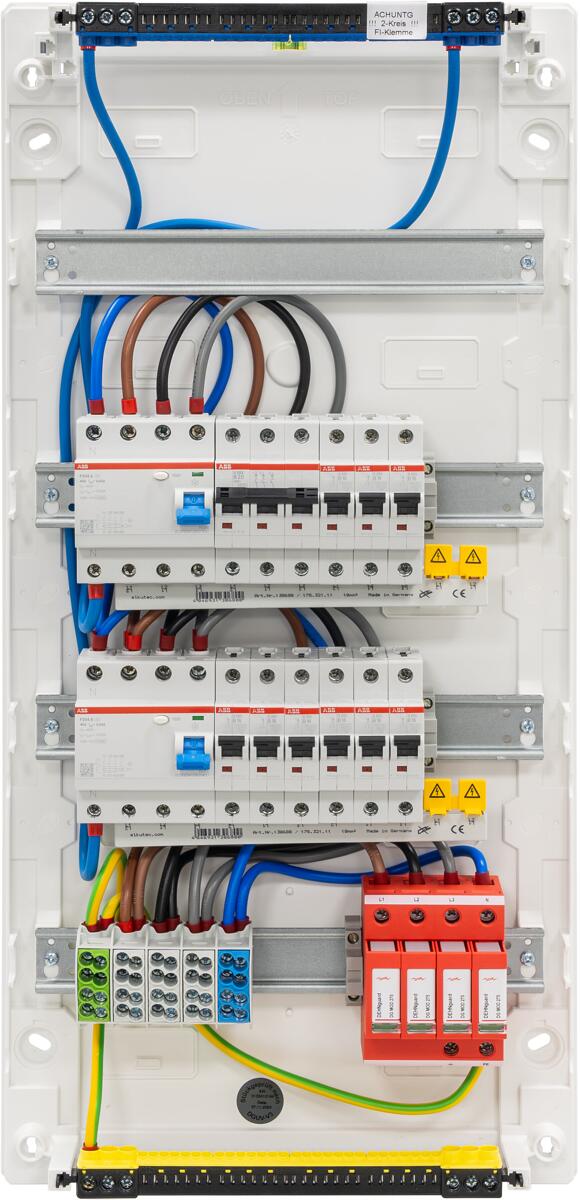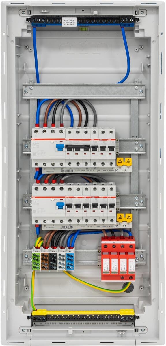 JÄGER UV4.1.09.1.2 Kleinverteiler, Unterputz, 4-reihig, bestückt und verdrahtet, 2 FI Schalter, Überspannungsableiter
