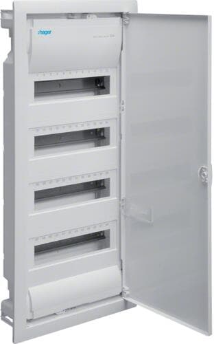 Hager VU48NC Volta Kleinverteiler, Unterputz, 4-reihig, 48 PLE, IP30, mit Tür, weiß