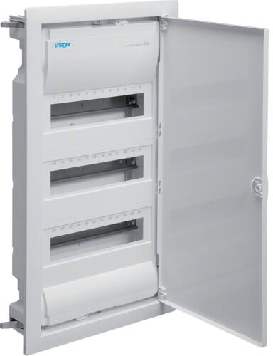 Hager VH36NC Volta Kleinverteiler, Hohlwand, 3-reihig, 36 PLE, IP30, mit Tür, weiß