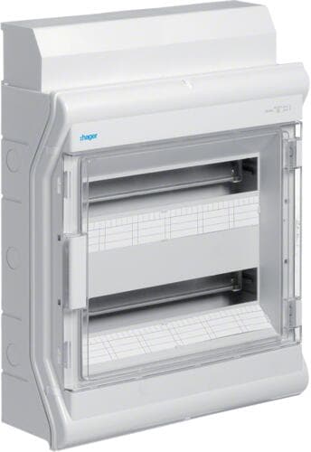 Hager VA24K Volta Tür für Kleinverteiler Aufputz, 2-reihig, Klarsichttür, mit Türschild, IP30, Kunststoff, weiß