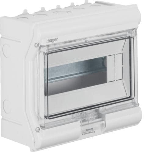 Hager VE106SN Vector Kleinverteiler, Aufputz, 1-reihig, IP65, 6PLE, UV-stabil, ohne Leitungseinführung, grau