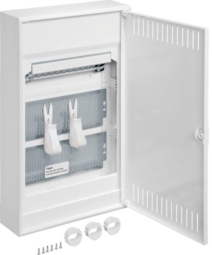 Hager VA36NW Volta Multimedia Kleinverteiler, Aufputz, 3-reihig, 36 PLE, IP30, mit geschlitzter Stahlblechtür, weiß