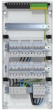 Hager VA48BV3 Volta Kleinverteiler, Aufputz, 4-reihig, 4x12 PLE, IP30, bestückt u. verdrahtet, 1 FI/LS 1P, 5 FI/LS 3x1P+N,SPD