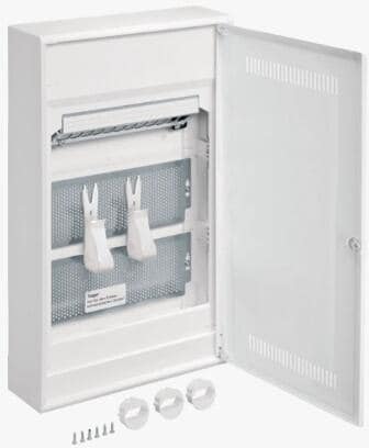 Hager VA48NW Volta Multimedia Kleinverteiler, Aufputz, 4-reihig, 48 PLE, IP30, mit geschlitzter Stahlblechtür, weiß