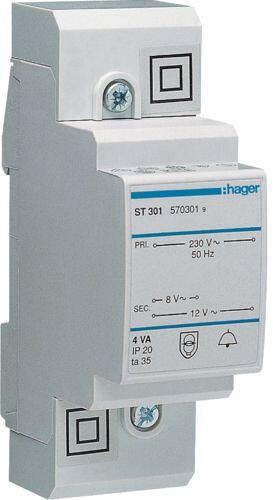 Hager ST301 Klingeltrafo 230V / 8V und 12V 4VA 2PLE