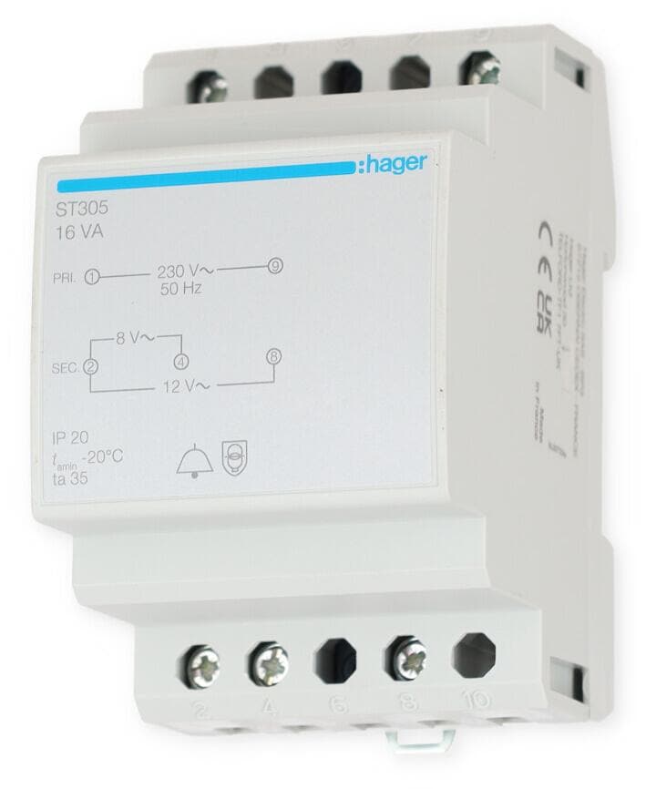 Hager ST305 Klingeltrafo 230V / 8V und 12V 16VA 3PLE