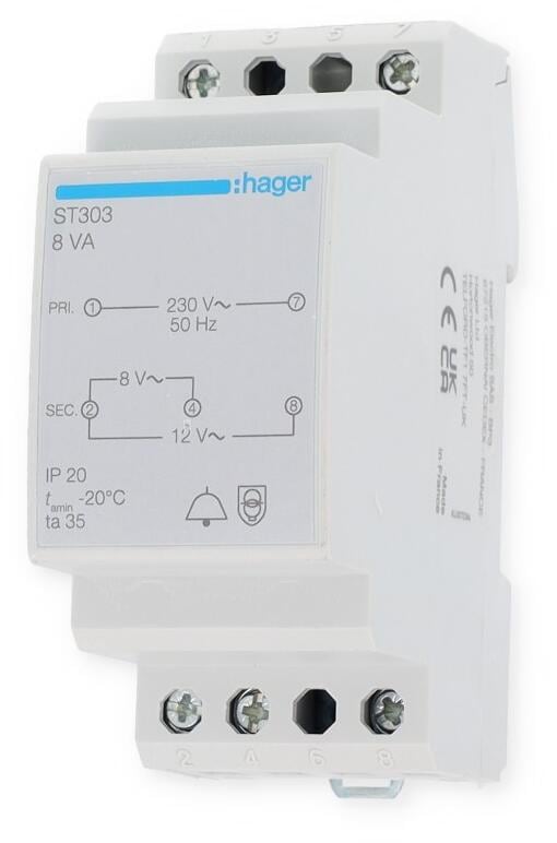 HAGER Klingeltrafo 230V / 8V und 12V 8VA 2PLE