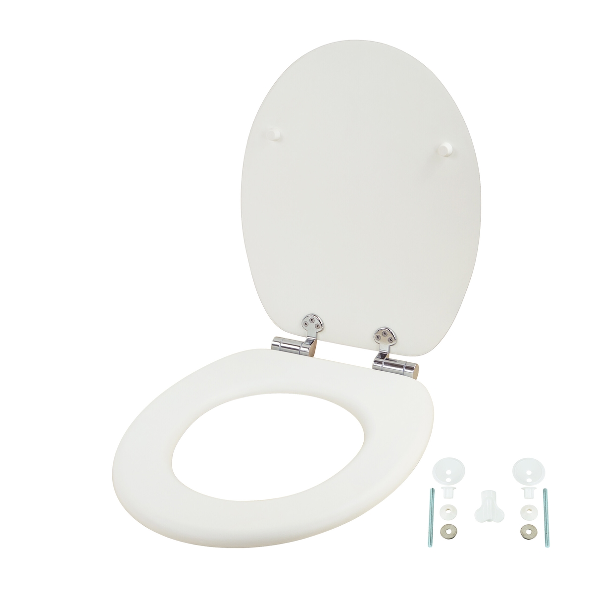 Relaxdays Toilettendeckel, doppelte Absenkautomatik, 37,5 x 43,5 cm, MDF, bis 150 kg, ovaler Klodeckel, WC Sitz, weiß