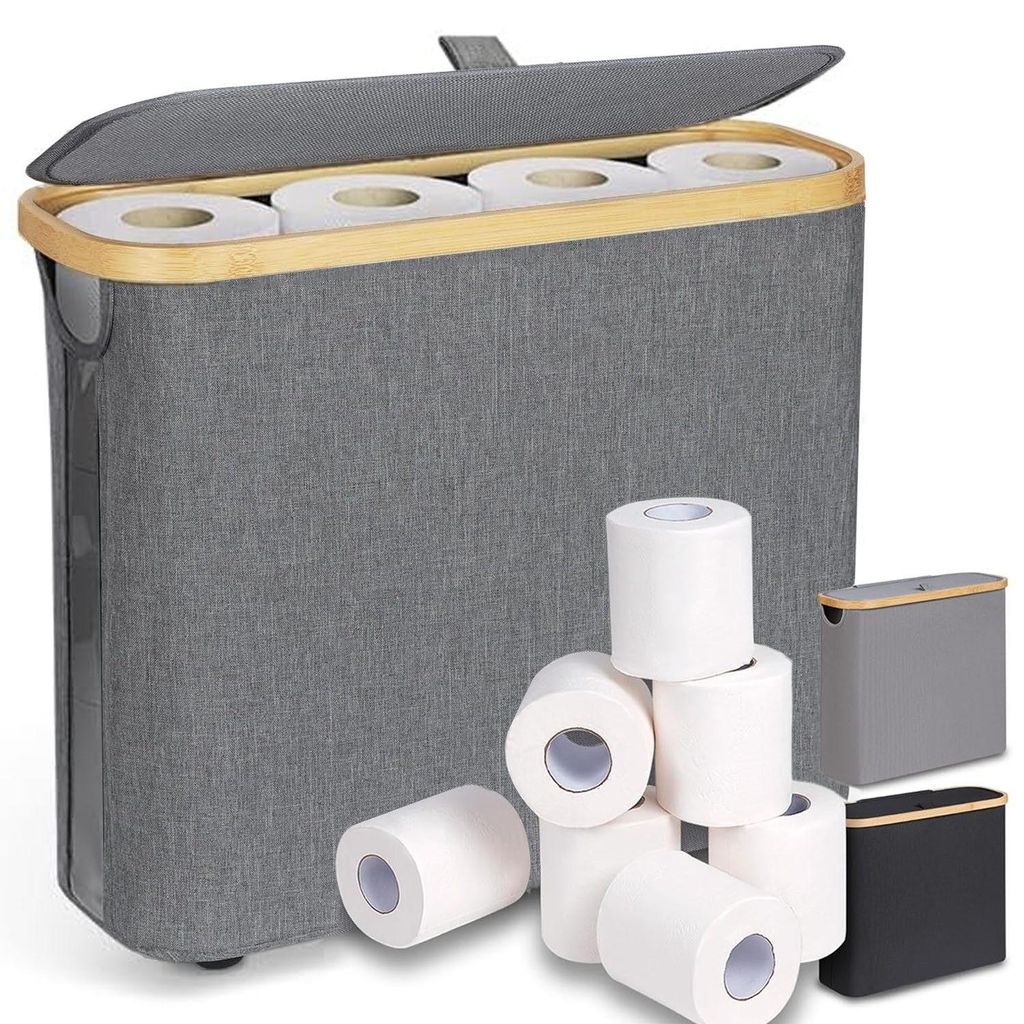 Toiletten-Ersatzrollenhalter 28 L Toilettenpapier Aufbewahrungskorb mit Bambusdeckel Schmaler Badezimmer Organizer für 9–12 Rollen Klopapier,fal...