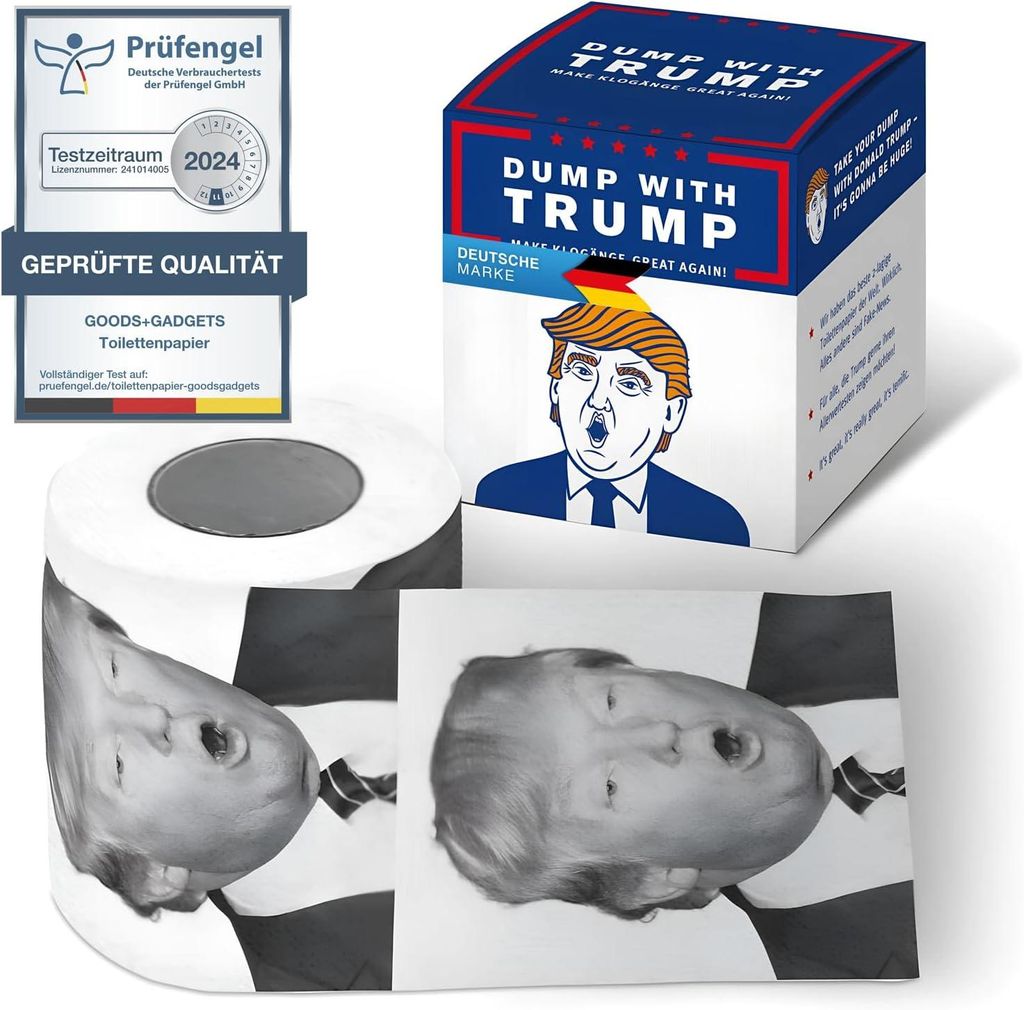 Goods & Gadgets klopapier witzig Take a Dump with Trump - Toilettenpapier bedruckt 2-lagig mit 200 Blatt | klopapier als lustiges Geschenk für Fre...
