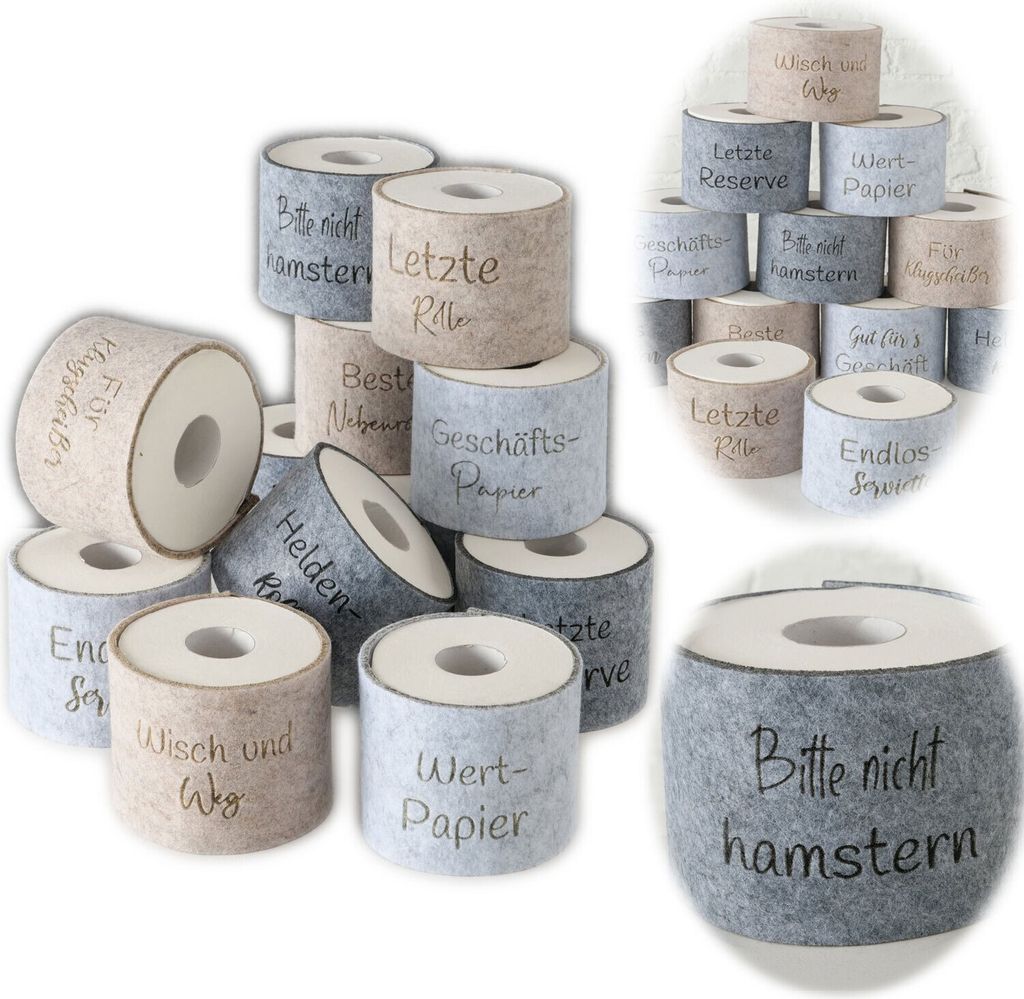 LS-LebenStil Toilettenpapier Banderole nicht hamstern Filz Klohut Husse Klopapier Klorolle Klorollenhut Häkelhut Aufbewahrung
