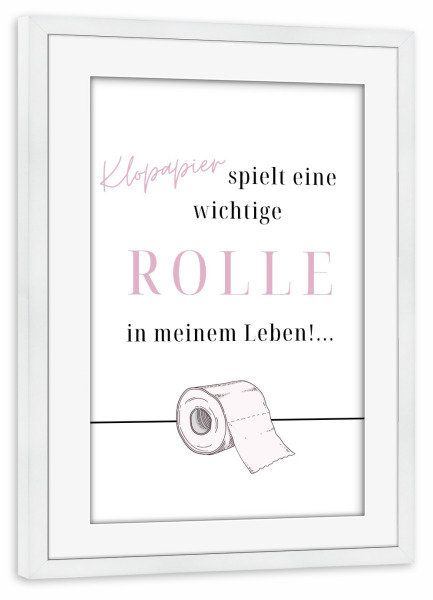 Poster mit Rahmen weiß "Klopapier spielt eine Rolle" artboxONE - Typografie,Buchstaben,Lustig