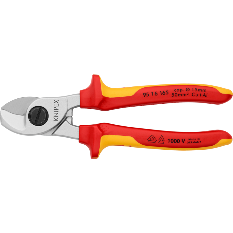 KNIPEX Kabelschere, mechanisch Einhand, Ø15mm, 50mm², L165mm, Isoliert, VDE geprüft