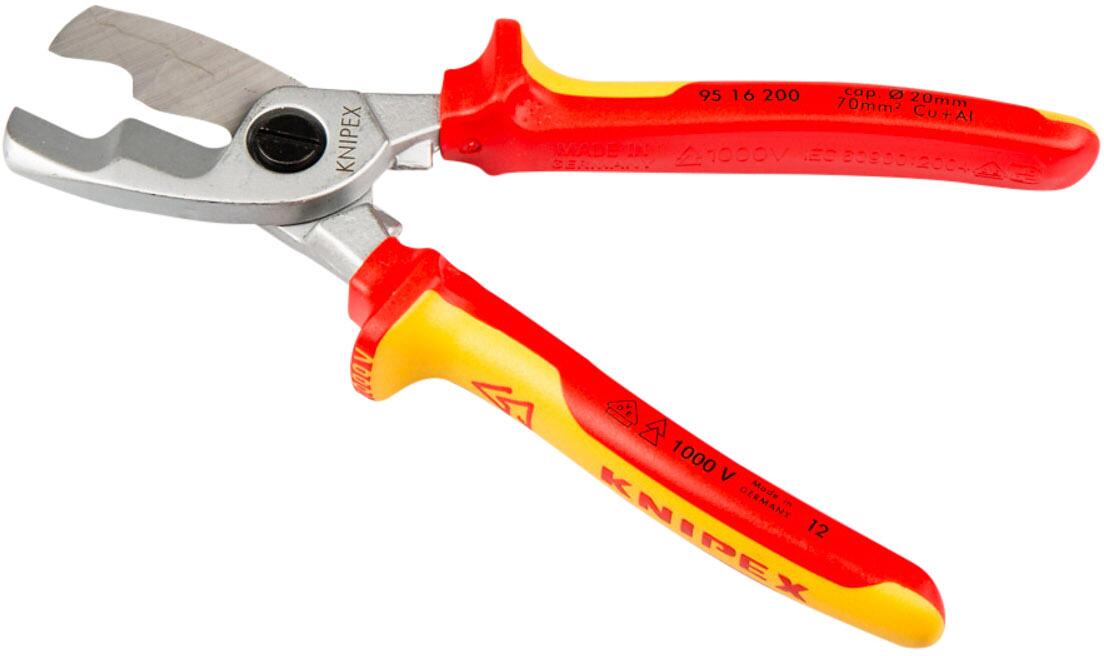 KNIPEX Kabelschere mit Doppelschneide, Ø 20 mm / 70 mm², 200 mm