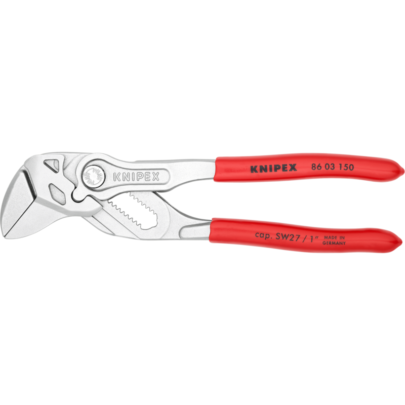 KNIPEX 86 03 150 Zangenschlüssel Zange und Schraubenschlüssel in einem Werkzeug mit Kunststoff überzogen verchromt 150 mm